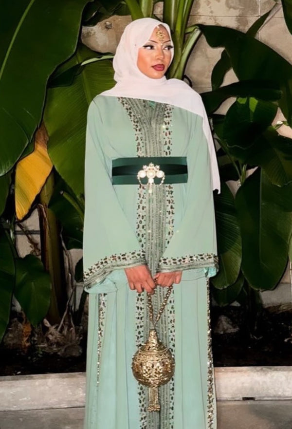 From hand-sewn silk sfifa and oukda detailing to intricate embroidery and beading, every element is carefully finished by hand.